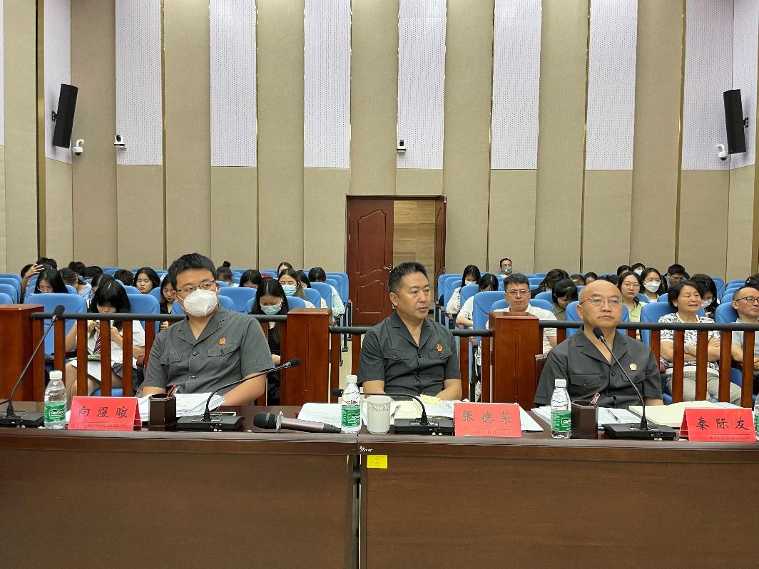 决赛正式开始前,张德荣副院长在致辞中充分肯定了高校模拟法庭比赛在提升高校法学专业学生的理论思维能力与创新实践能力方面的巨大推动作用,其表示青白江区人民法院作为法学实践的前沿阵地之一,乐于为高校模拟法庭竞赛提供司法实践最真实的审判环境,希望参赛选手们全力以赴,将所学的法学知识运用于实践,不断提升自身的创新实践素养和综合运用法律知识的能力。