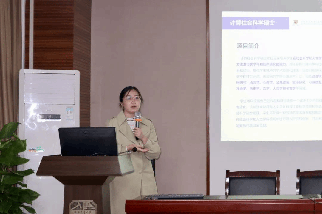 郝海燕博士则向大家详尽地介绍了拟新增硕、博项目“计算社会科学”有关情况。她指出,大数据在人文社科领域的应用已成为国际化趋势,将大数据和人工智能技术运用到人文社会科学的研究中是时代发展的必然要求。拟新增的计算社会科学项目旨在培养学生在社会科学和人文学科领域运用计算方法进行跨学科和创新研究的能力,将计算科学与人文社会科学相结合,使他们能够探索和解决现实世界中的社会问题.