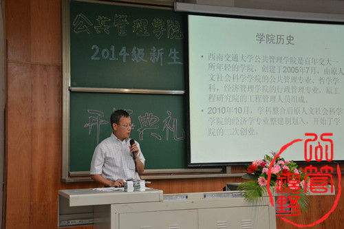 2014年9月5日,继全校的开学典礼在北区体育馆结束之后,下午16:00永利官网准时在X4151召开了2014级的新生开学典礼。院长陈光教授、党委书记王永杰教授、前党委书记刘斌教授、党委郑简平副书记、副院长雷叙川副教授、学院各系主任和导师及新生辅导员张哲老师悉数到场。本次典礼由余小英老师主持,旨在给全数到场的166名新生一次全新的人生洗礼。