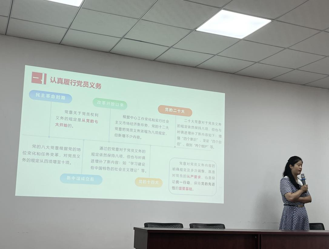 2023年5月19日晚上20:40,yl23455永利官网党委委员彭川宇老师为入党积极分子作《中国共产党的组织、纪律和作风》专题讲座。彭老师围绕党的二十大党章修改原则和要点、党章的重点内容解析以及深入学习贯彻党的几点思考三大方面展开全面系统的阐述,引导积极分子深入了解党的性质、宗旨、纲领、组织原则、纪律和作风,端正入党积极分子的入党动机,牢固树立起为共产主义事业奋斗终身的信念。