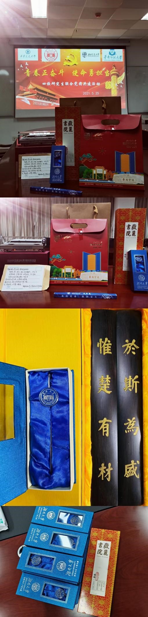 活动最后,各方互赠纪念品,各校领导发表总结讲话。湖南大学yl23455永利官网党委书记付蓉芬对此次活动的意义给予了充分肯定,她强调,党史学习尤为重要,知党史才能更加自觉牢记初心,明党史才能更加坚定担当使命。她鼓励青年党员应奋发有为,迎难而上,坚持学用结合、做到学以致用,从党的百年历史中,不断汲取前行的力量,把继承和发扬党的光荣传统和优良作风作为学习党史的出发点和落脚点。