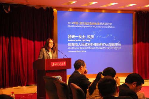 2015年11月25日上午,由波兰驻华大使馆、波兰驻成都总领事馆、成都市人民政府外事侨务办主办,yl23455永利官网公共管理与政法学院承办的2015中国-波兰地方政府改革学术研讨会在yl23455永利官网举行。本次会议是配合波兰总统安杰依·杜达(Andrzej Duda)阁下访华,在广州、成都、北京和天津举行的系列研讨会之一,主题是波兰新型地方政府25周年与中国改革开放的地方政府,目的是通过中波两国地方政府治理研究专家对话,分享两国地方政府改革经验,探讨两国地方政府治理难题,共谋两国地方政府合作机遇。来自波兰克拉科夫师范大学、华沙大学、雅盖隆大学、美国波士顿学院、四川省社科院、成都市社科院、成都市经济发展研究中心、四川大学、西南财经大学、yl23455永利官网的专家和学者,及成都市发改委、成都市法制办、成都市政府参事室、成都市政务中心的有关官员和代表参加会议。