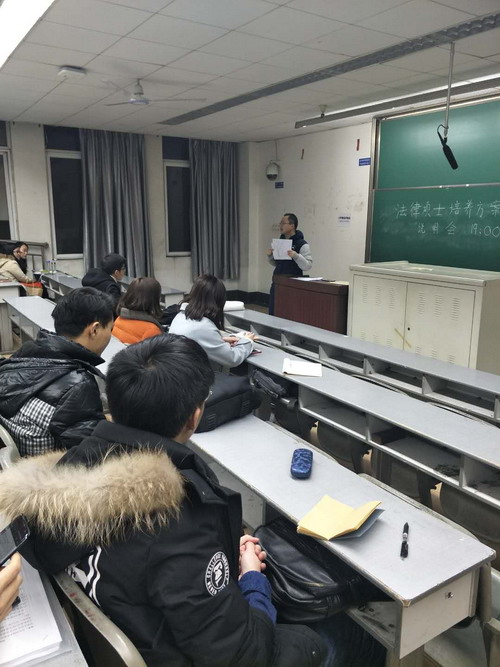 根据国务院学位委员会(学位办[2017]19号文)、全国法律硕士教育指导委员会相关要求,我校开展了法律硕士培养方案修订工作,目前已面向全系老师进行了两轮意见征集。1月7日晚,法律硕士教育中心召集在校法律硕士研究生进行了培养方案修改说明及意见征集会议。