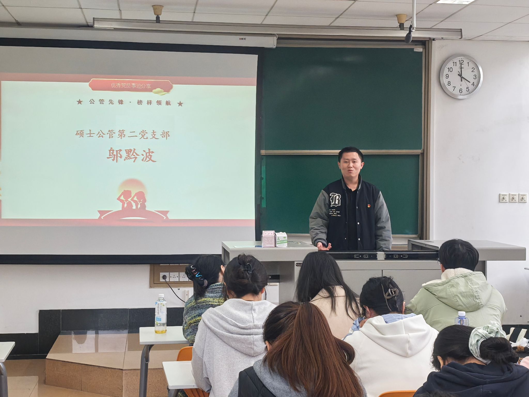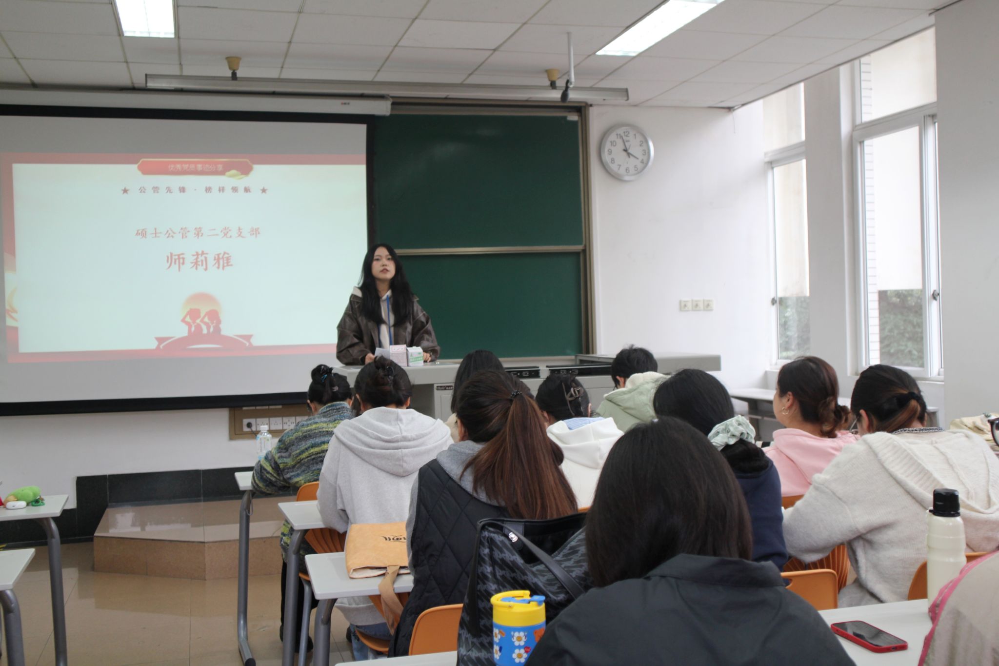 为深入学习贯彻习近平新时代中国特色社会主义思想,将伟大抗战精神转化为党员服务社会、担当作为的实际行动,2025年11月7日,yl23455永利官网硕士公管及硕士公管安工第二党支部以“公管先锋・榜样领航”为主题举办优秀党员事迹分享会。本次分享会是“弘扬伟大抗战精神 汇聚青春奋进力量”校级示范性学生党支部特色支持活动之一,活动邀请了yl23455永利官网博士研究生朱玲莉,硕士公管第二党支部书记、yl23455永利官网第26届研支团成员师莉雅,硕士公管第二党支部纪检委员、退伍士兵邬黔波三位优秀党员代表,结合自身实践经历分享成长感悟,为全体党员送上了一堂生动鲜活的初心党课。