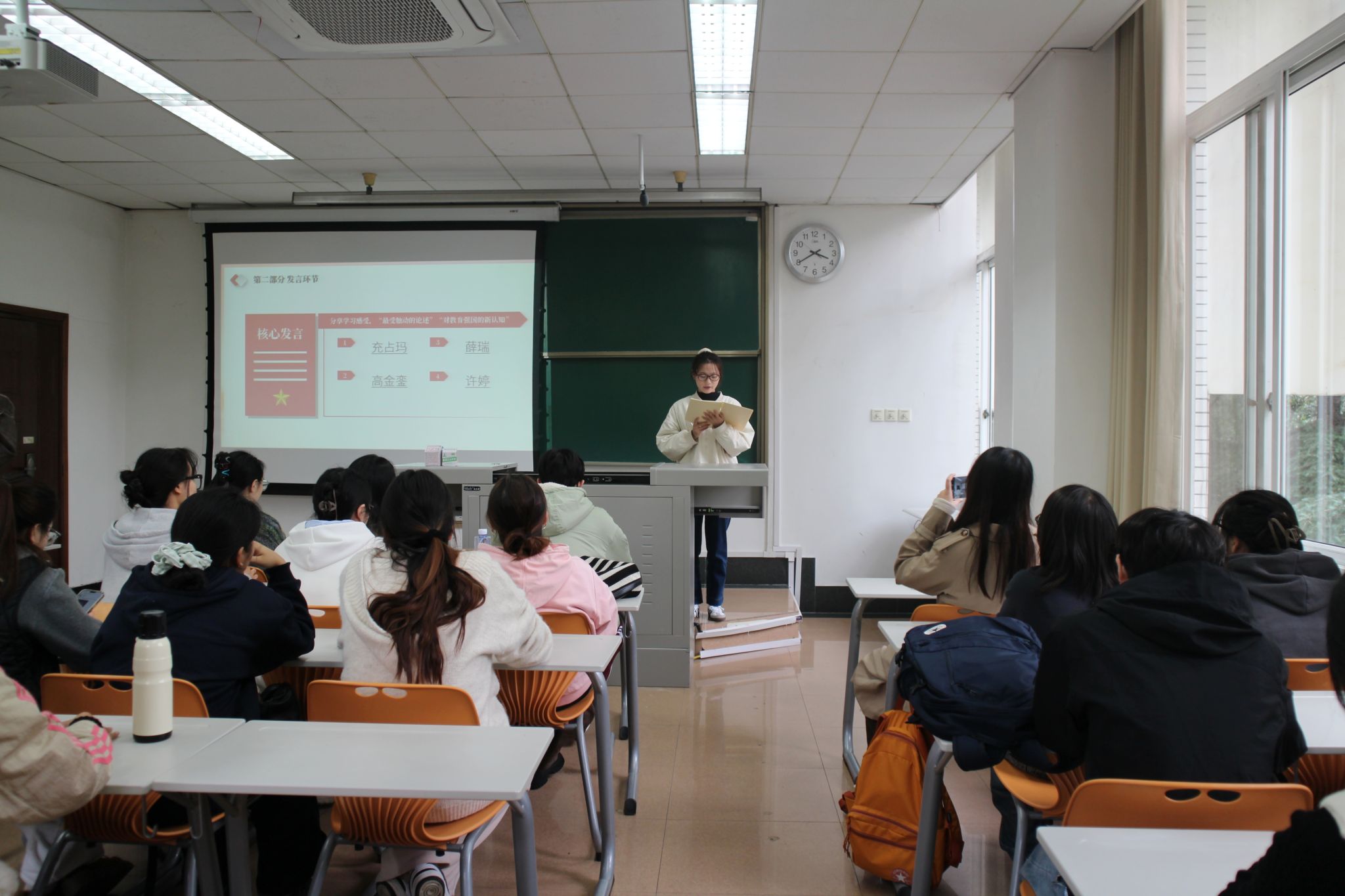 本科法学党支部以理论宣讲为抓手,由张译丹同志担任领学人,围绕 “理论之源”“时代之魂” 等四大板块开展专题授课,深入阐释中国特色社会主义法治理论的深厚根基与习近平法治思想的核心要义,重点解读坚定 “四个自信” 与建设教育强国的内在逻辑关联,为后续研讨环节筑牢理论基础,引导党员在法治视角下思考教育公平、教育治理等重要议题。