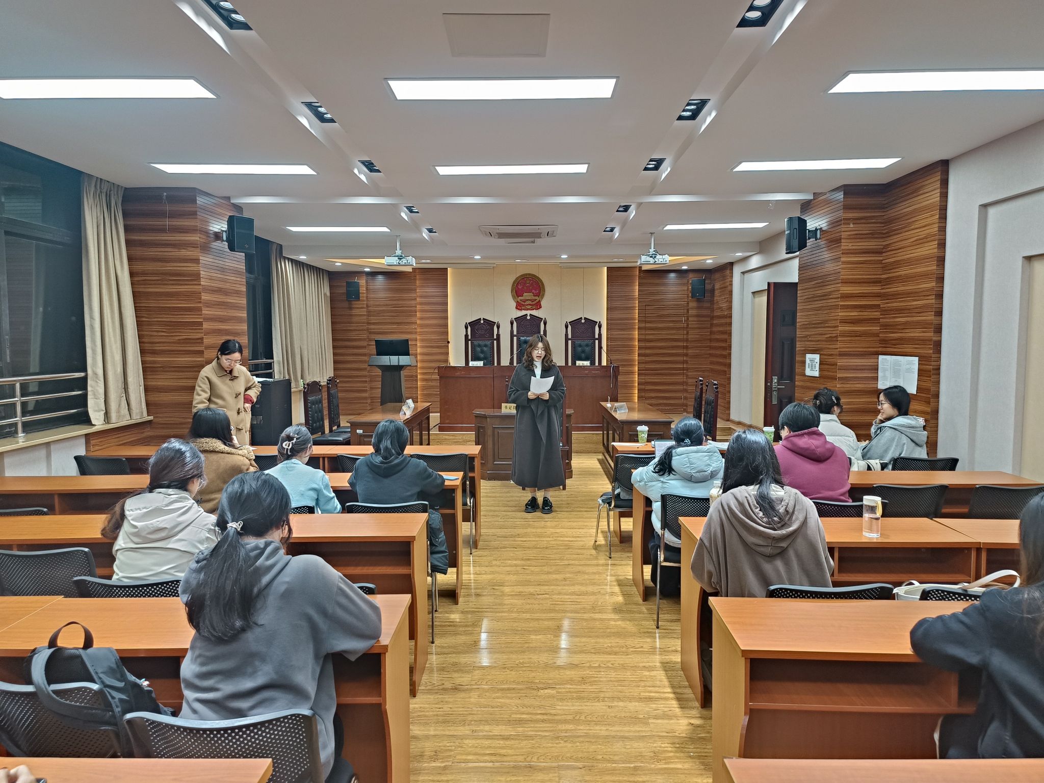 2025年11月18日,本科法学党支部以“法槌卫英烈・庭审践担当”为主题,在学院01417模拟法庭实验室成功举办“侵害英雄烈士名誉、荣誉民事公益诉讼”模拟法庭活动。全体党员以专业实践为载体,搭建沉浸式实务锻炼平台,用法治思维传承抗战精神,以实际行动捍卫英雄烈士尊严。