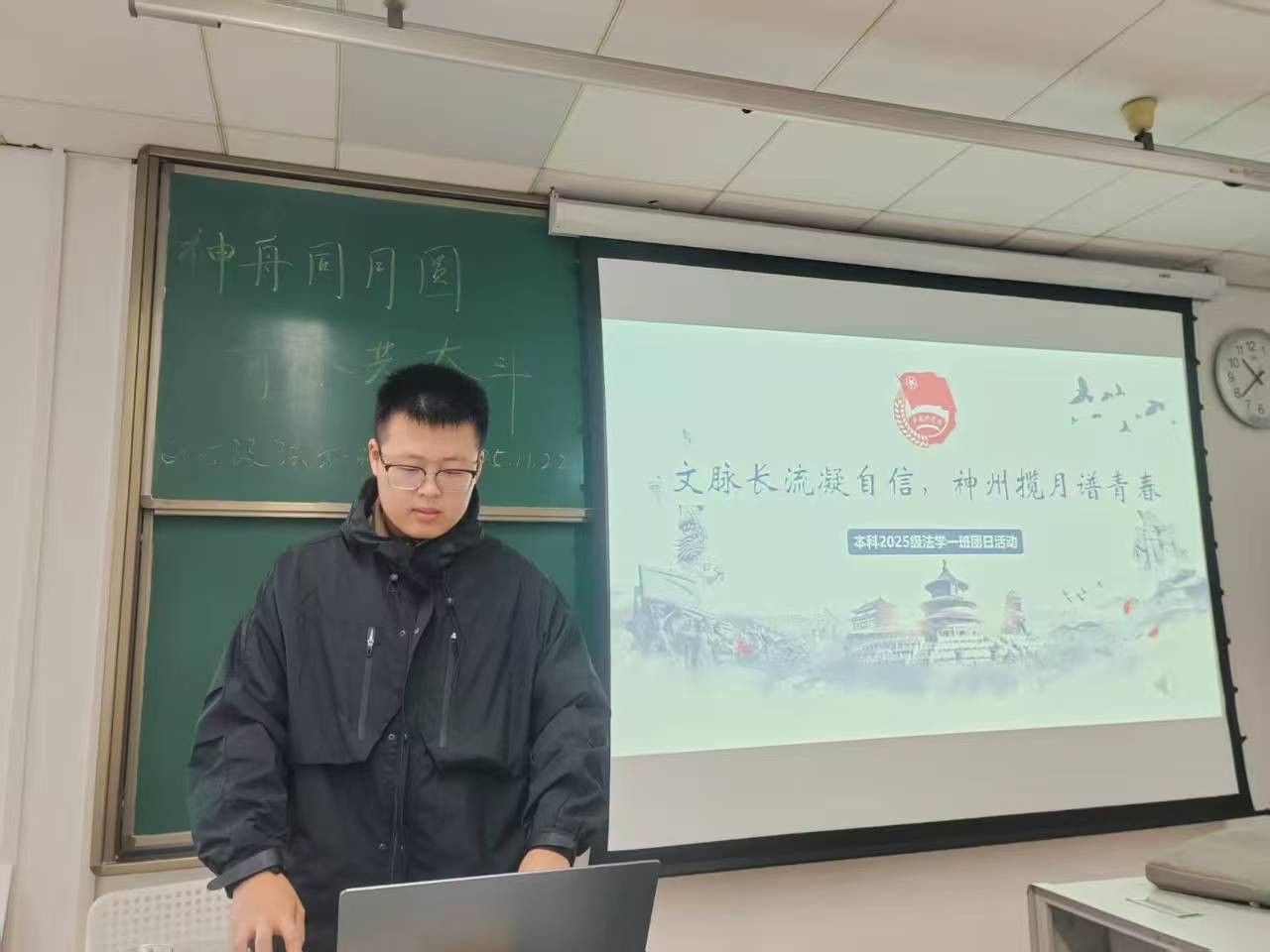 为大力弘扬航天精神,夯实文化自信根基,引导广大团员青年在传承中华优秀传统文化中坚定理想信念,在感悟航天成就中激发奋斗热情,2025年10月22日,yl23455永利官网本科法学2025-01班团支部举办“文脉长流凝自信,神州揽月谱青春”主题团日活动。